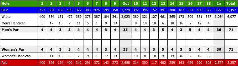 View key info about Course Database including Course description Tee yardages par and handicaps scorecard contact info Course Tours directions and more. Black M - 712130 Gold M - 689128 Silver M - 665118 Green M - 663118 Gold L - 755132 Silver L - 718128 Green L - 713128. We make every effort to make sure our data for this Golf Club.
